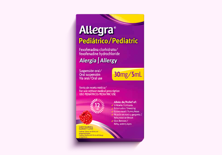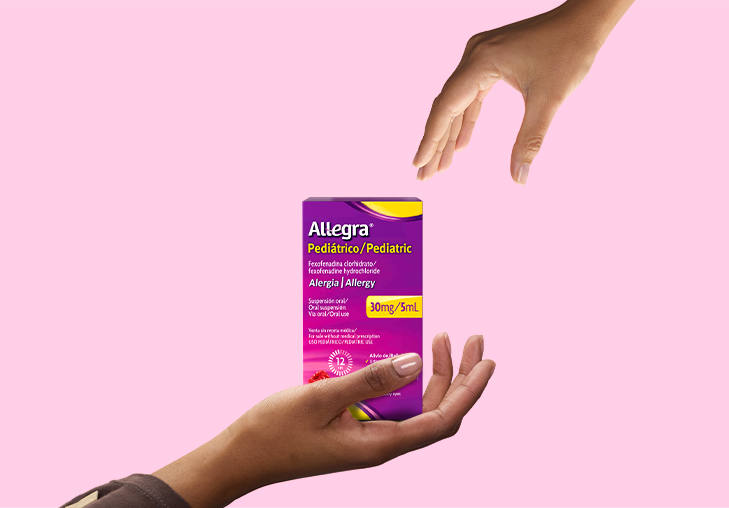 Descubre Allegra® Pediátrico: alivio rápido² de la rinitis alérgica y urticaria, sin producir sueño**.