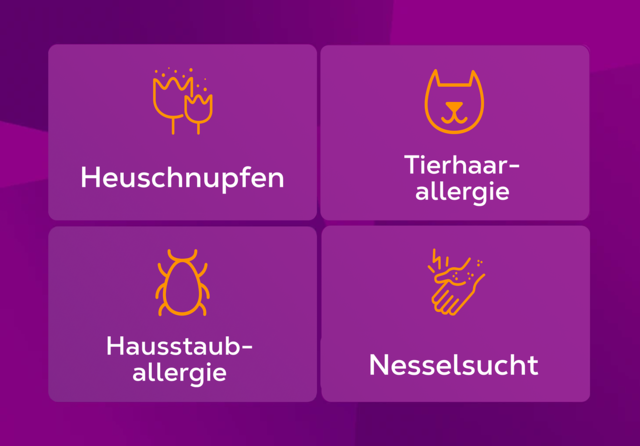 Hilft ganzjährig bei verschiedenen Allergiearten, wie Hausstaub-, Tierhaar- und Schimmelpilzallergie sowie Nesselsucht (Urtikaria)